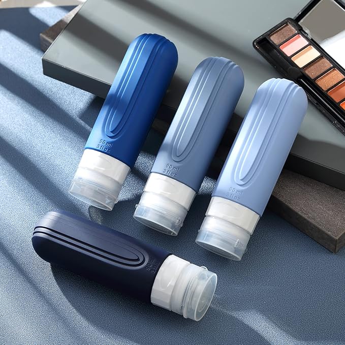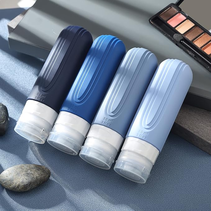 Travel Bottles for Toiletries, Tsa Approved 3oz Travel Size Containers BPA Free Leak Proof Refillable Liquid Silicone Squeezable Travel Accessories for Shampoo Conditioner Lotion (4 Pack)