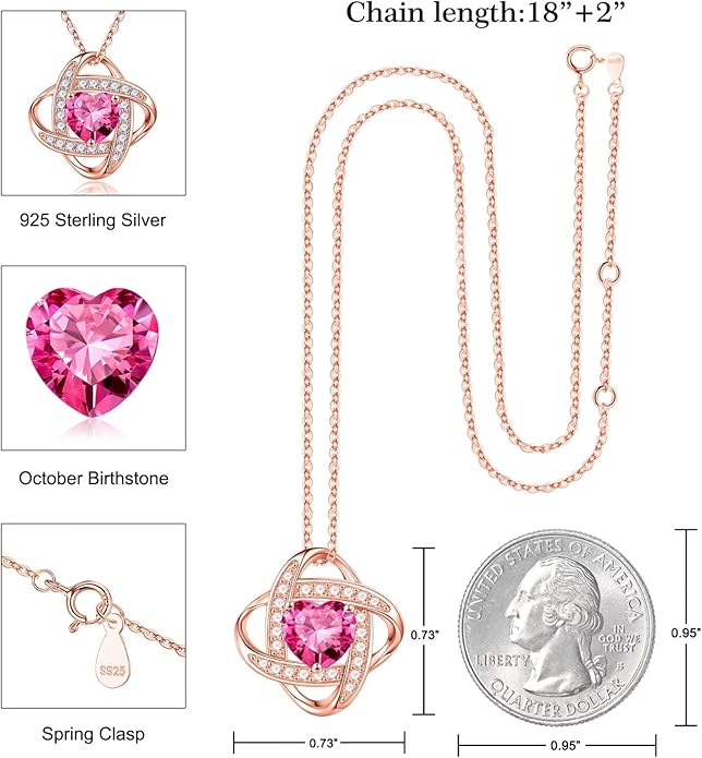 - UNIQUE NECKLACE DESIGN: The unique Love knot and the design of heart birthstone symbolize your eternal love. When the person you love wears this dainty necklace, she will feel your full love and happiness. The perfect gift for mom, grandma, girlfriend, wife, sisters and friends on Mother's day, Christmas, Valentine's day or birthday.