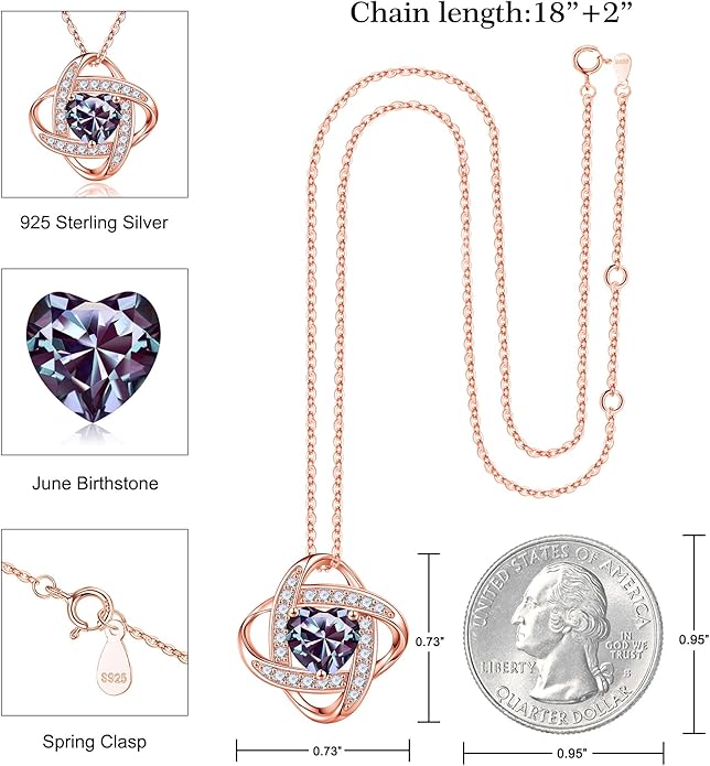 - UNIQUE NECKLACE DESIGN: The unique Love knot and the design of heart birthstone symbolize your eternal love. When the person you love wears this dainty necklace, she will feel your full love and happiness. The perfect gift for mom, grandma, girlfriend, wife, sisters and friends on Mother's day, Christmas, Valentine's day or birthday.