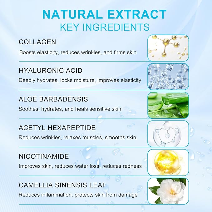 - [Effective Eye Treatment]: LAVONE premium under eye masks are infused with collagen, hyaluronic acid, aloe extract, acetyl hexapeptide, hyaluronic acid, and feverfew natural extracts. These eye patches for puffy eyes and dark circles are designed to help reduce the appearance of dark circles, puffiness, and fine lines, while providing hydration and improving skin elasticity. With regular use, your under-eye area can appear firmer, brighter, and more refreshed.