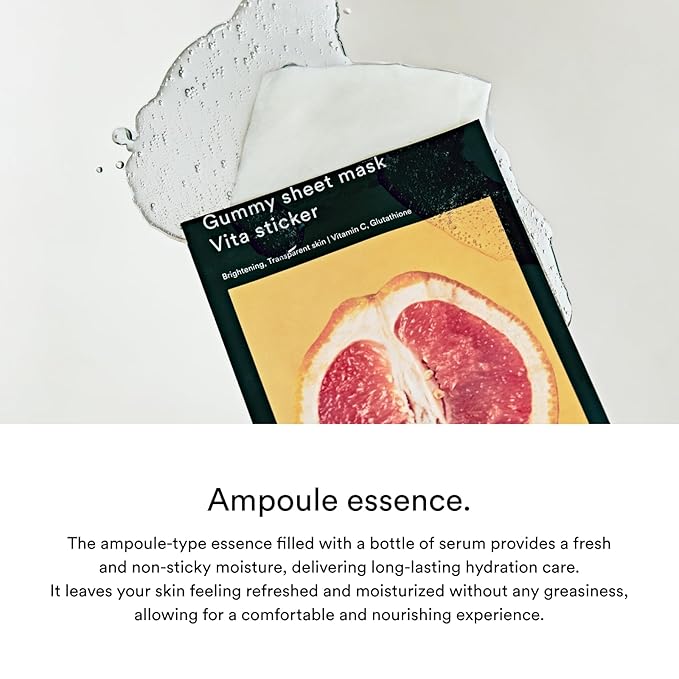 Abib Gummy Sheet Mask Vita Sticker(10 sheets) IBrightening & Soothing Sheet Mask with Niacinamide, Cica, Peptides & Vitamin Complex, Korean Skincare for Sensitive Skin