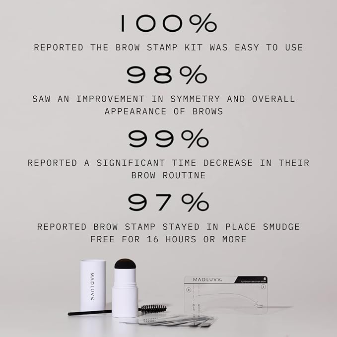 MADLUVV Brow Stamp Kit with Brow Stencils – Easy Eyebrow Shaper for Natural-Looking Brows – Popular Eyebrow Stencil Kit Used by Professionals – 9 Shapes, Spoolie, Travel Bag & Stamp (Nearly Black)
