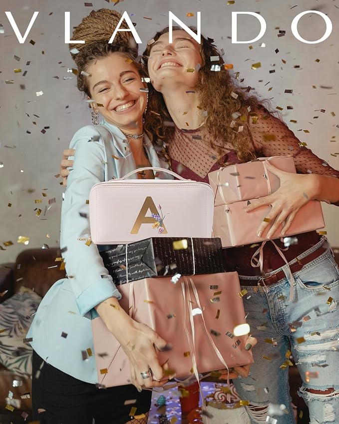 Vlando Mothers Day Mom Gifts,Graduation Gifts for Girls,Personalized Makeup Bag,Makeup Organizer Bag,Preppy Stuff Gifts for Teen Girls Birthday Gift for Women Friends Sister(Letter A)