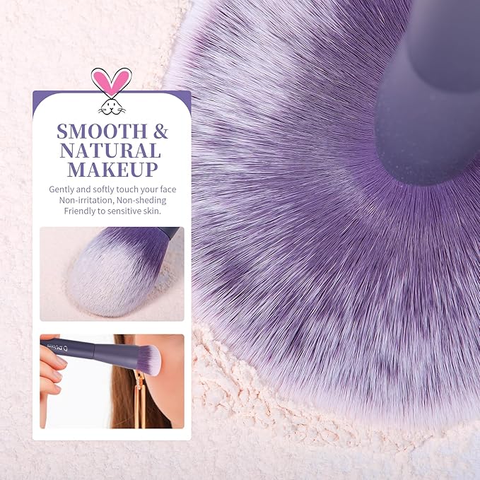 - ๐Elegant Design, Excellent Gift: Stunning Luxury Purple handles paired with soft synthetic bristles create a visually striking, high-end aesthetic. The curved design elevates its luxurious appeal. Designed for gifting, this brush set arrives in a gift box perfect for holidays like Christmas, Valentine's Day, Mother's Day, New Year, or Thanksgiving Day. It's a thoughtful gift for women, girls, makeup lovers, brides, or beauty enthusiasts who value style and ethics.