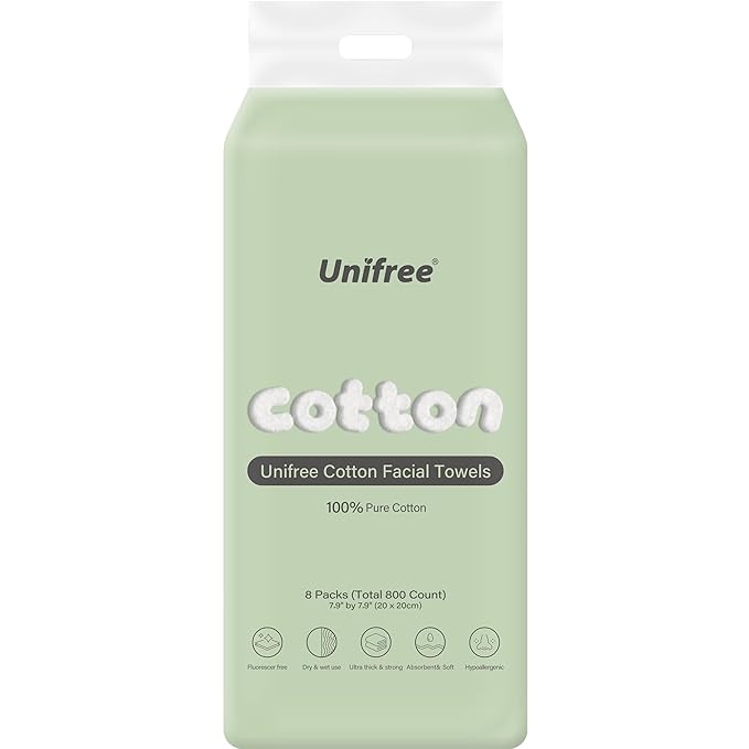 Unifree Facial Tissues I Dry Wipes I Makeup Remover, 8-pack Value Pack, 800 Count