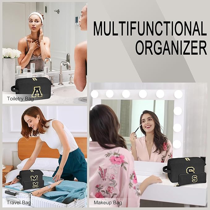 YOOLIFE Initial Travel Makeup Bag Cosmetic Bag - Teen Girl Gifts Trendy Stuff Friend Birthday Gifts for Women Teen Girl Kids