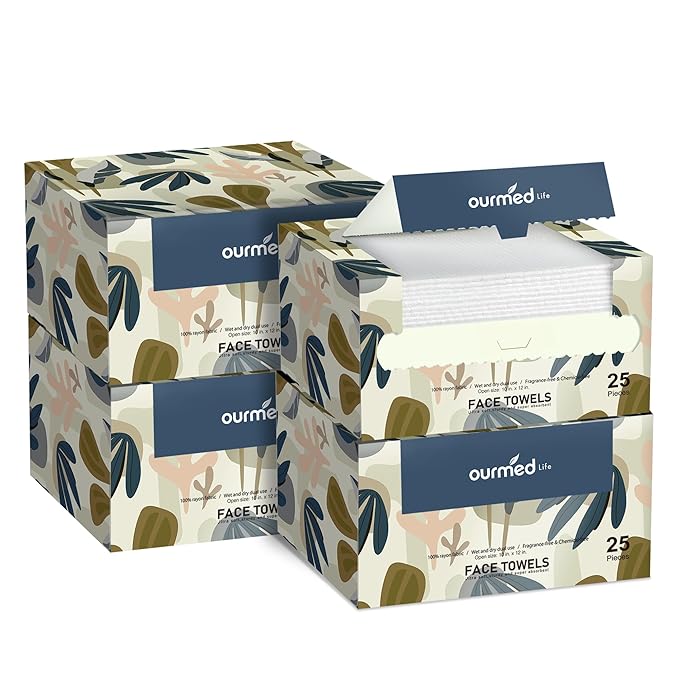 Ourmed Life Face Towels, Disposable Biodegradable Facial Towels for Sensitive Skin, Lint- free Face Wipes for Washing Face, Skincare and Makeup Remover, Dry Wipes, 10"×12" Extra Large, 100 Count