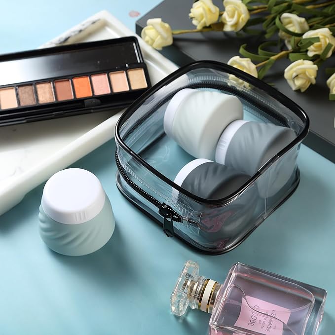 Gemice Silicone Cream Jars TSA Approved Travel Size Containers with Clear Bag, Leak-proof Travel Accessories with Lid for Cosmetic Face Body Hand Cream (4 Pack)