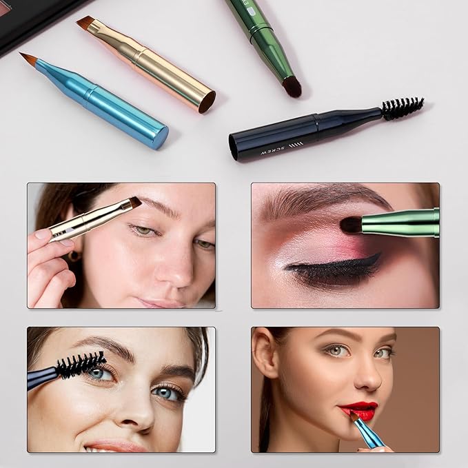 - 【4-in-1 Travel Makeup Brush】The travel makeup brush set includes an eyeshadow brush, eyebrow brush, lip brush, and screw brush. Provide you application of Eyeshadow, eyebrows, and lip and bring a perfect finish. All-in-one makeup brushes make our way of makeup more convenient.