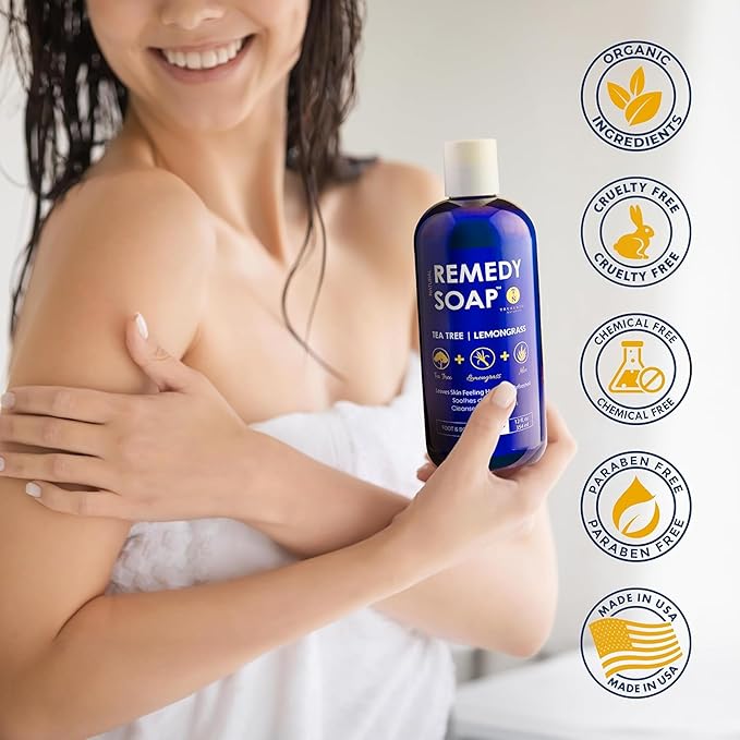 - NOURISHES SKIN – Crafted with organic saponified oils, glycerin, aloe vera, and essential oils like tea tree and lemongrass, this body wash cleanses gently while deeply hydrating your skin.