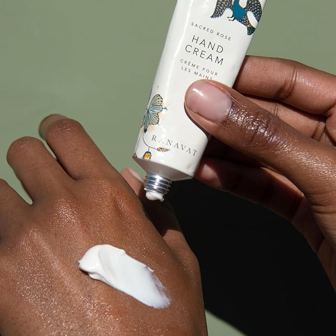 RANAVAT Restoring Hand Cream - Daily Hand Lotion for Dry Hands with Damask Rose - Non Greasy Hand Lotion for Everyday Dryness - Hydrates with Almond Oil & Vitamin E (1.7 oz)