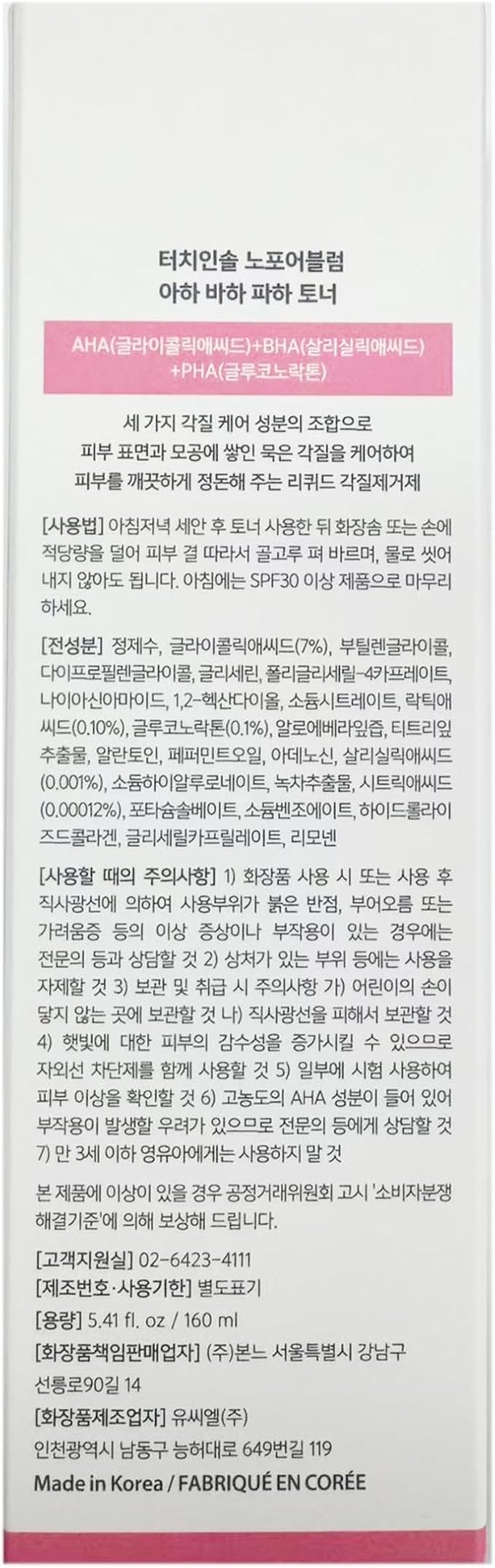 - CLEANSE AND SHRINK PORES: No Poreblem AHA BHA PHA Toner is expertly crafted to cleanse your skin deeply and shrink your pores, promoting skin clarity and reducing breakouts. Use once or twice a week, ideally in the evening, to unlock your skin's natural glow and maintain its health