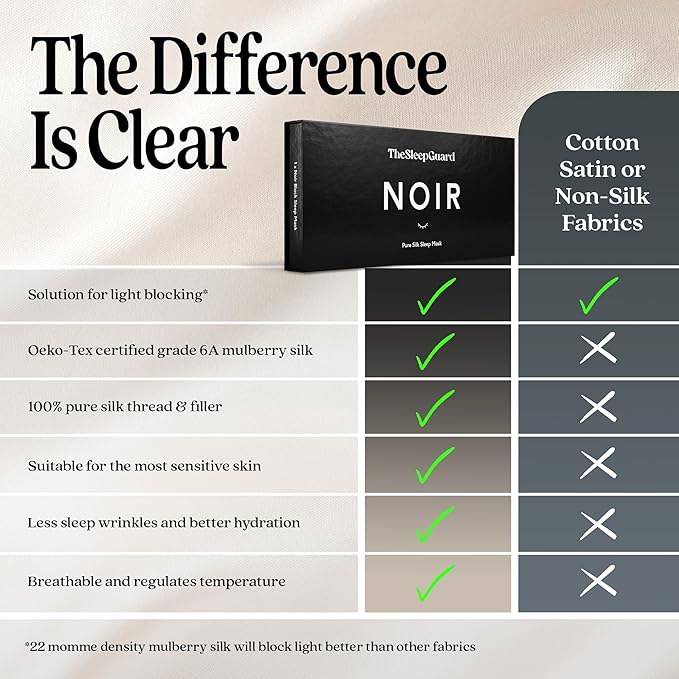 - โ INVEST IN YOUR SLEEP - Experience TheSleepGuard difference with our luxury sleeping masks. Crafted from the highest grade 6A Mulberry silk at 22 momme and certified by Oeko-Tex to ensure you sleep soundly. Remember, better sleep leads to a better you.