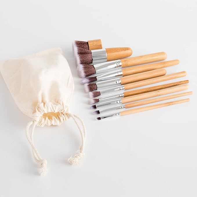 - MAKEUP BRUSHES SET - This 11 pcs makeup brush set includes a powder brush, a foundation brush, a concealer brush, a highlighter brush, a blush/contour brush, a lip brush, an eyebrow brush, an eyeliner brush, an angled brush, and an eyeshadow brush.