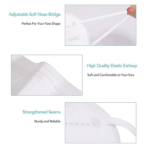 KN95 Face Masks 100 PCS, 5-Ply KN95 White Masks,Breathable Protection Masks, Individually Wrapped, Cup Dust Safety Mask