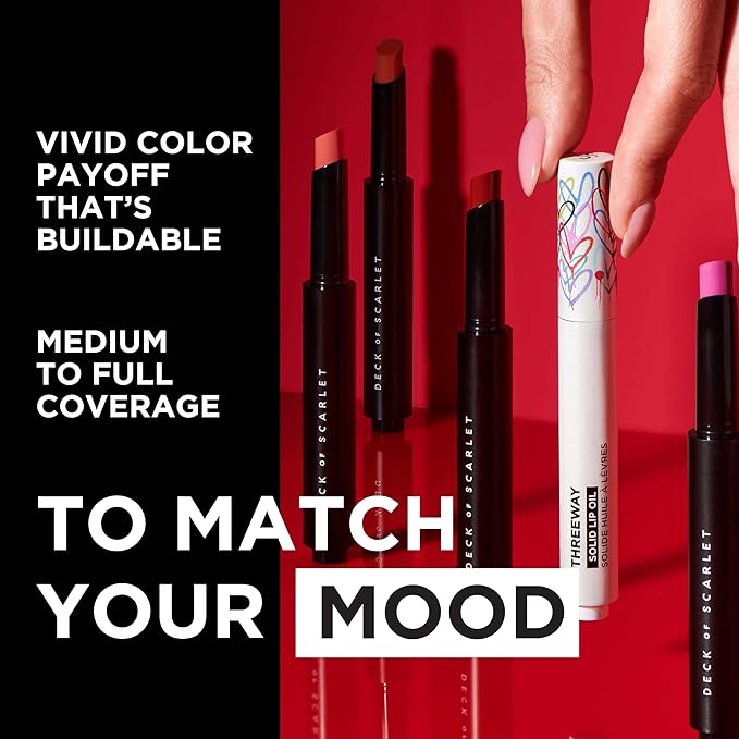 Deck of Scarlet Threeway Solid Lip Oil, Vegan Formula With Hyaluronic Acid and Hydrating Oil Blend, Glossy Finish - Natural Nectar