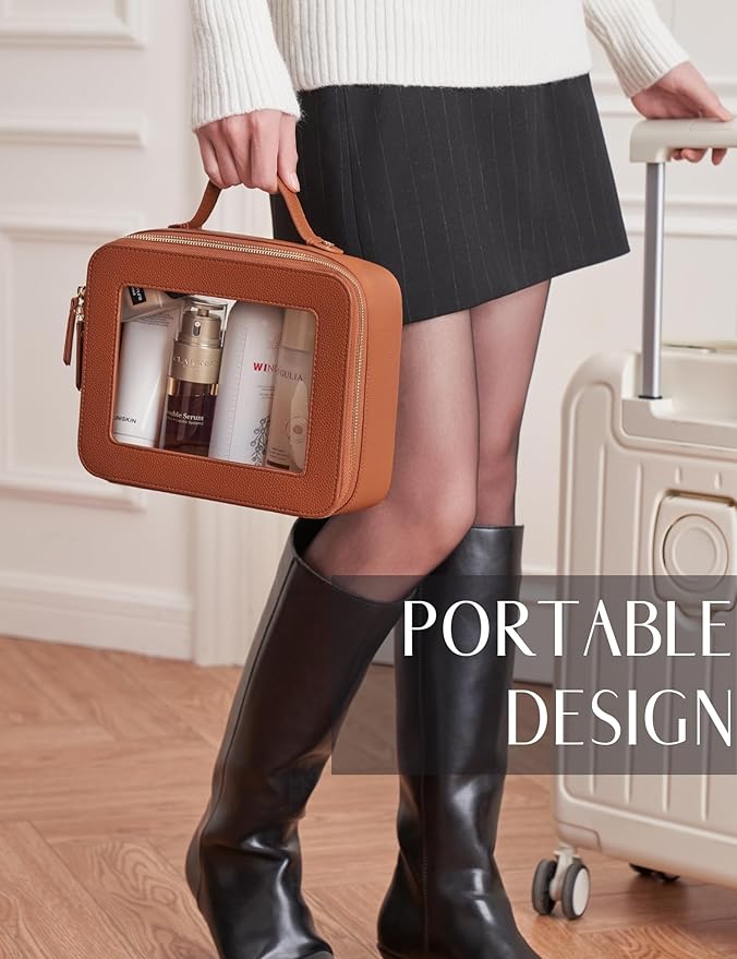 - [Premium Material and Durability] – The clear small cosmetic case, both the exterior and interior, is crafted from high-grade faux leather of different textures, which is highly scratch resistant, durable and exceptionally easy to keep clean. It features a smooth zipper for secure closure, and elegant light gold metal hardware accents, adding a luxurious and sophisticated touch to the bag's overall design.