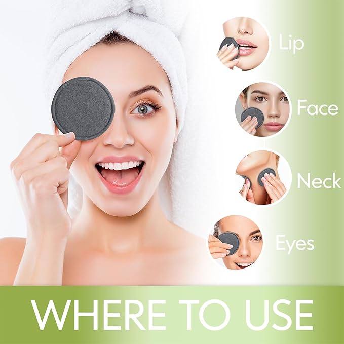 - Reusable Makeup Remover Pads: The package contains 16 high-quality bamboo faced reusable cotton rounds, which can gently and cleanly remove makeup from your face without harming your skin, making your skin feel very comfortable. Soft but sturdy materials can effectively clean your eyes, face, lips, neck, etc