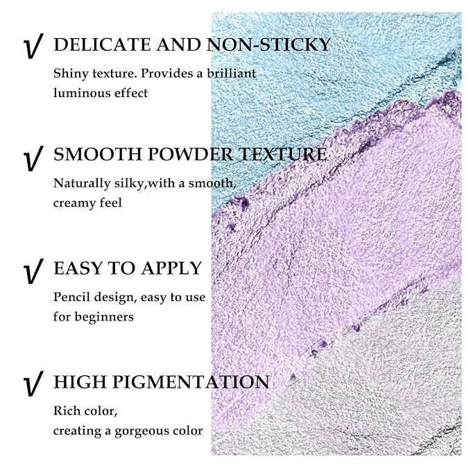 - Eye Highlighter Stick: Glitter Eyeshadow Pen has a shimmer color. You can easily apply a gradient look with it. Multiple colors for you to choose from to create different eye makeup.