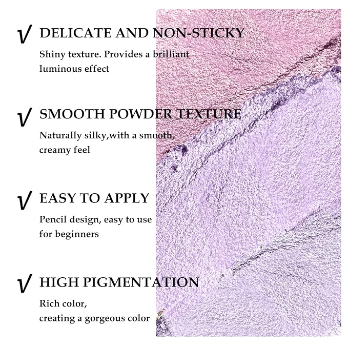 - Eye Highlighter Stick: Glitter Eyeshadow Pen has a shimmer color. You can easily apply a gradient look with it. Multiple colors for you to choose from to create different eye makeup.
