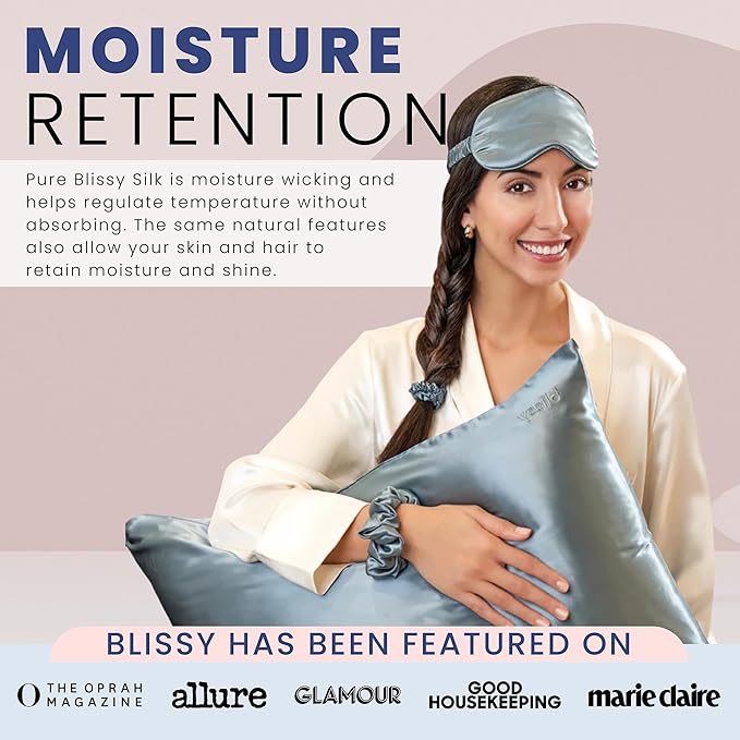 - MOISTURE RETENTION: Pure Blissy Silk is moisture wicking and helps regulate temperature without absorbing. The same natural features also allow your skin and hair to retain moisture and shine.