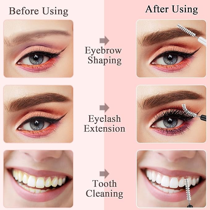 - Wider Range of Applications: In addition to beauty, these mascara brushes are also very convenient for cleaning and scrubbing small spaces that fit tightly. You can use them to clean braces, gaps between teeth, dental crowns, and bridges to keep your teeth healthy and white. They are even used to clean small parts in workshops. These high-quality brushes do not shed and are very flexible. You can bend them into any shape you need to touch and clean.