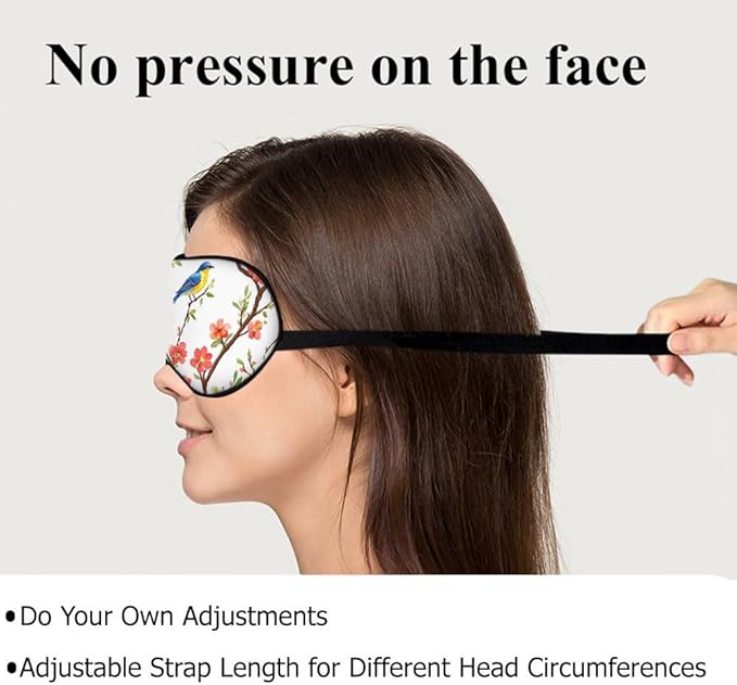 - 【Product Size】: Cute Blue Birds silk sleep mask measures 8.2" x 4.3" with modified adjustable buckle. The elastic straps is light and easy to adjust suitable for most men and women, ensuring a snug fit.