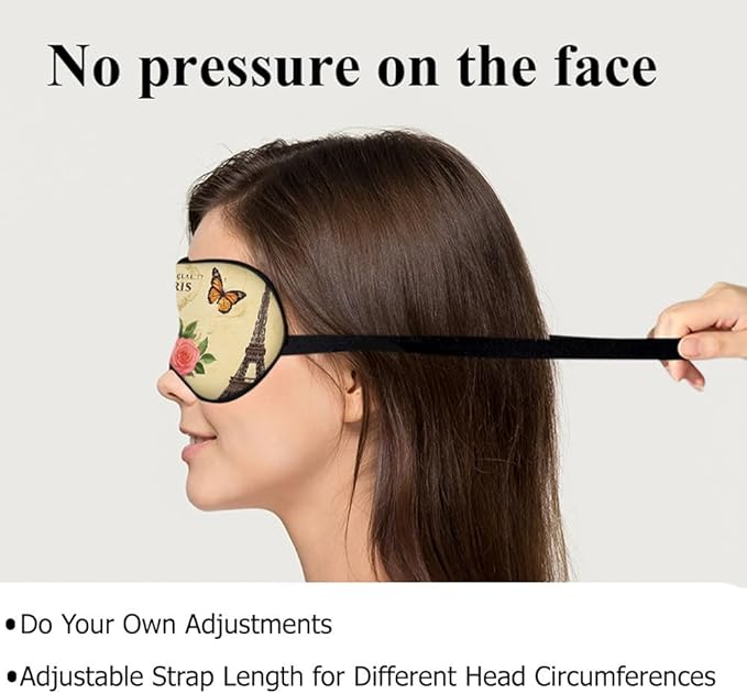 - 【Product Size】: Eiffel Tower silk sleep mask measures 8.2" x 4.3" with modified adjustable buckle. The elastic straps is light and easy to adjust suitable for most men and women, ensuring a snug fit.