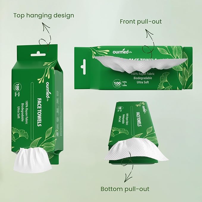 Ourmed Life Face Towels - Versatile Disposable Biodegradable face towel for Sensitive Skin | Lint-Free Facial Tower for Cleansing, Skincare, Makeup Removal & Dry Wipes, 300 Count