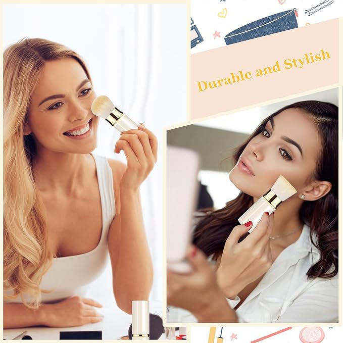 Retractable Kabuki Makeup Brush 2 Pack, Travel Powder Foundation Makeup Brush Face Blush Brushes for Blending Liquid, Blush, Bronzer, Buffing, Sunscreen,Flawless Cosmetics