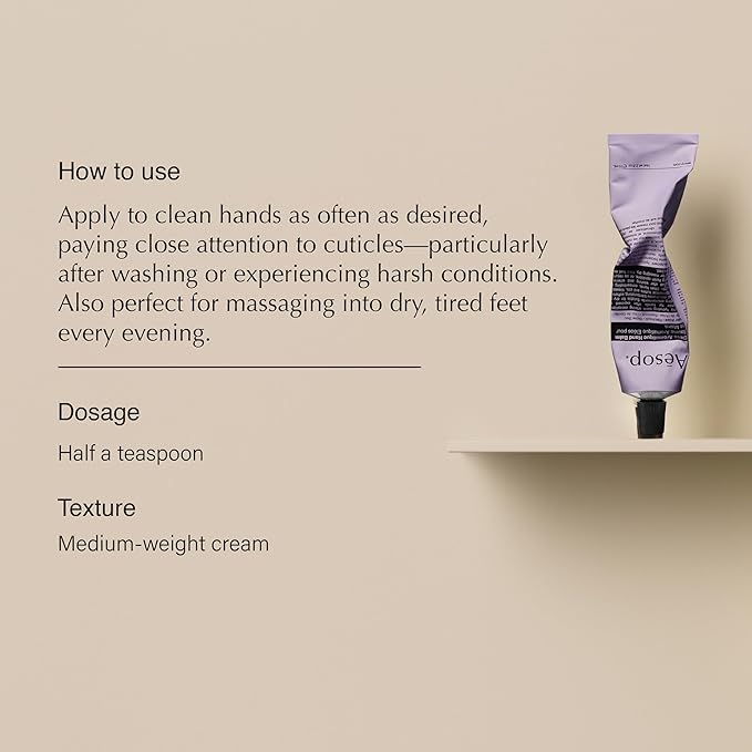 Aesop Eleos Aromatique Travel Size Hand Balm | Shea Butter and Coconut Oil to Nourish Dry, Cracked Hands | Lotion Made with Skin-Calming Essential Oils | 2.4 oz / 75 mL