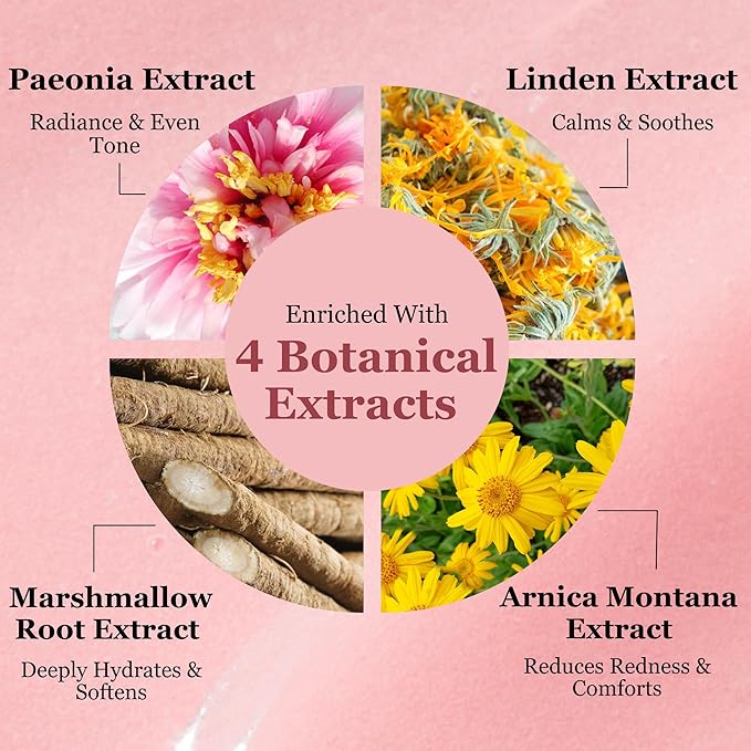 - ๐ฟInfused with Soothing Botanical Extracts - Linden, Arnica & Marshmallow Root: Calms skin, reduces redness, and provides deep hydration for a comfortable cleanse.