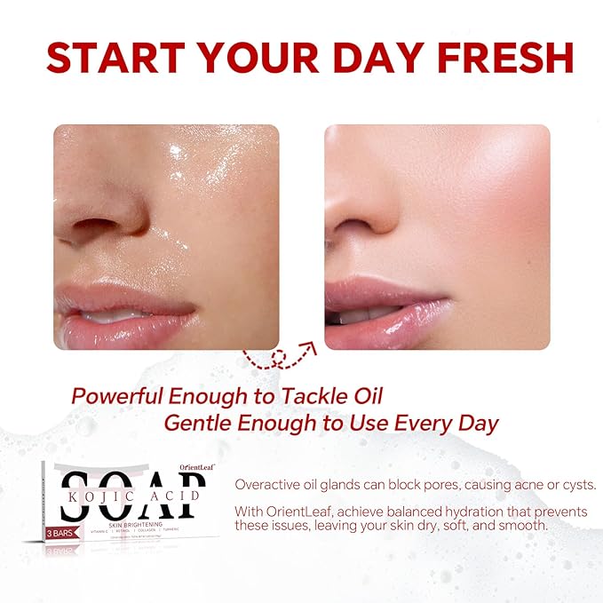 - OrientLeaf Kojic Acid Soap: Gently cleanses and refreshes your skin, helping you maintain a healthy, balanced complexion, dark spot remover. Suitable for face and body, this soap helps support clear, trouble-free skin.