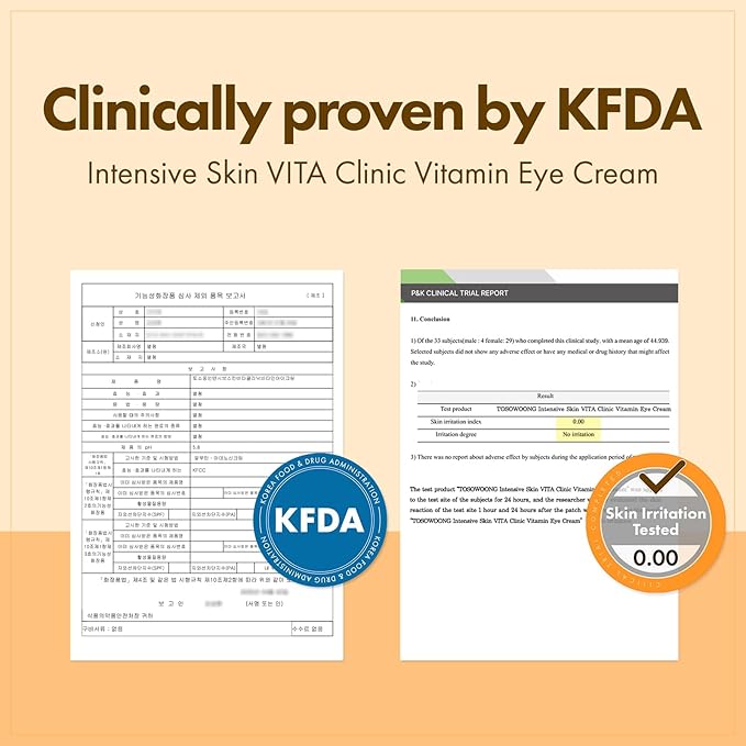 TOSOWOONG VITA Clinic Vitamin Eye Cream, Korean Skincare with 5% Arbutin, 2% Niacinamide, Hyaluronic Acid, Glutathione, Seabuckthorn Eye Serum for Fine Lines & Wrinkles, Puffiness, 15ml / 0.5 fl. oz.