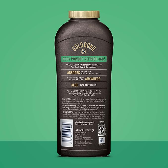 - Gold Bond Men's Essentials Body Powder provides wetness and odor protection with a refreshing 360 scent