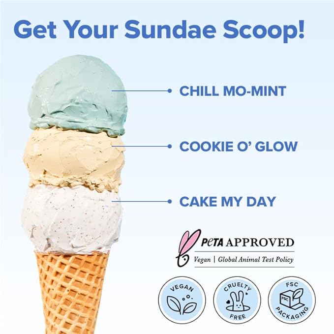 - SUNDAE FUNDAY EVERY DAY!: Try our hot selling products from the ice-cream inspired wash-off facial treatments! Includes both full-size and travel-size.