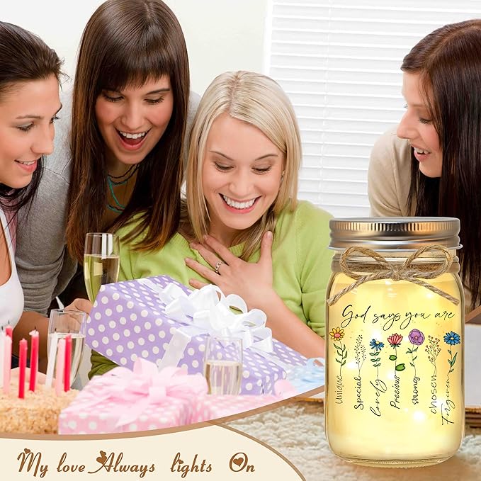 Religious Christian Gifts for Women - Decorative Jar Night Light for Christmas, Birthday, Sister, Friend, Coworker - Inspirational