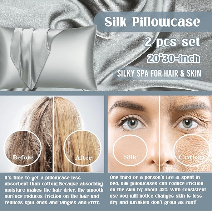- There's one special item in the gift basket: a pair of silk pillowcases! A solution to her waking up in the morning with dry skin and tangled hair, every woman needs a couple of silk pillowcases! As a less-absorbent fabric than cotton, it relieves dry skin and hair, and the silky touch reduces friction on the skin and hair, which slows down the growth of wrinkles and reduces split ends!