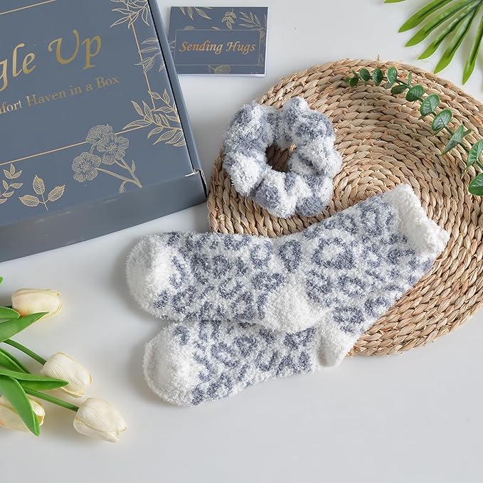 - Perfect Friendship Gifts for Women: Leopard spa makeup headband for washing face use. And fuzzy hair scrunchie for women, gils. Thoughtfully curated and beautifully packaged, this gift basket is ideal as birthday gifts, holidays gifts, Christmas gifts for women sister mom, or any occasion to show someone special you care.