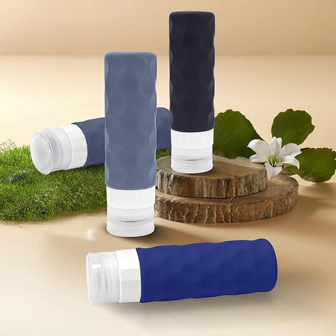 Travel Bottles for Toiletries, 4pcs Tsa Approved 3oz Travel Size Containers, BPA Free Leak Proof Premium Silicone Bottles, Refillable Liquid Squeezable Accessories W/Toiletry Bag (Blue)