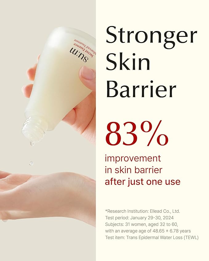 - SU:M SECRET ESSENCE (80ml/2.71fl oz) - This essence deeply hydrates and strengthens the skin's barrier, helping to enhance elasticity, smoothness, and natural vitality for a refreshed and youthful appearance.
