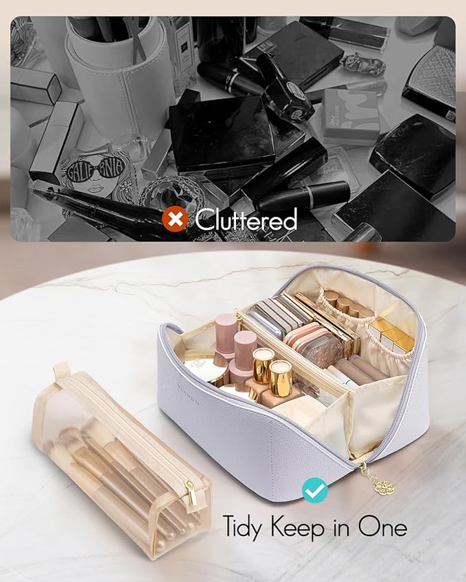 - Roomy & Portable: 9.1 x 4.8 x 4.7 inches (0.53lbs) offers ample space for cosmetics, brushes, and toiletries. Maximizes storage without cluttering luggage—ideal for travel,daily cosmetic organizer