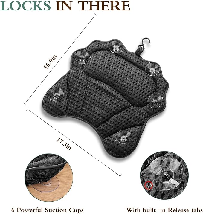 - ๐ใA truly ergonomic bath pillowใergonomic custome designed headrest brings head and neck max. comfort and relaxation. Extra thick shoulder and back padding brings shoulder and back max. support and relaxaion.Fits all Bathtub, Spa Tub, Hot Jacuzzi.
