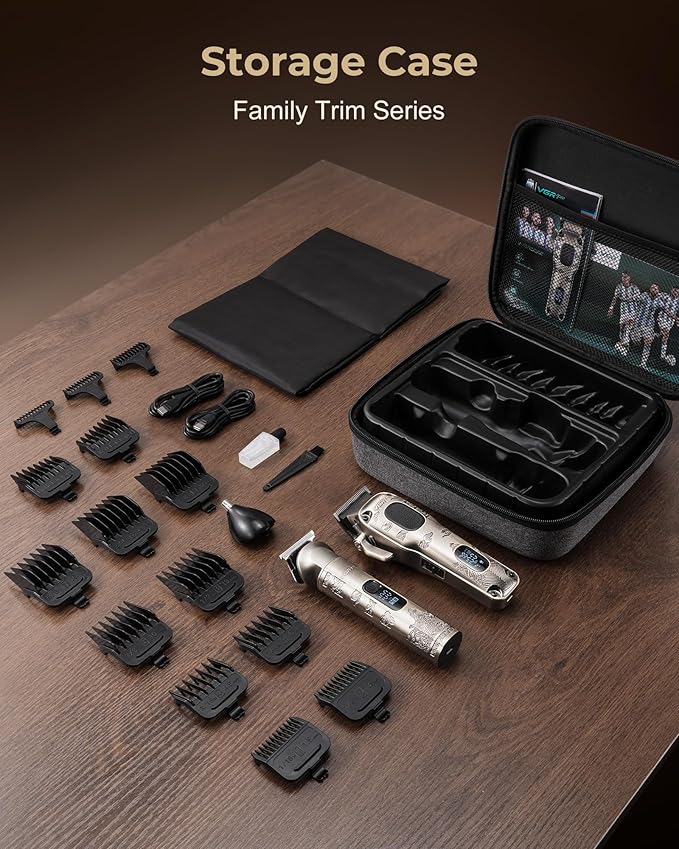 - A Game-changer Especially for Family Hair Cutting - This Mens Grooming Kit and Hair Trimmer can handle all your grooming needs. It includes a hair clipper with 9 guide combs(1/16",1/8", 3/16",1/4", 3/8", 1/2",5/8", 3/4",7/8" ) Right Ear Taper*1,Left Ear Taper*1, a 4-in-1 trimmer (nose/ear trimmer, beard trimmer, foil head shaver, Zero Gapped T-blade)with 3 guide combs(1/3/5mm), 10 ml blade oil, blade cleansing brush ,even a barber cape, EVA package case and 2 USB charging cable. Whether you're maintaining your beard, fading your haircut, manscaping, or all of the above, this grooming kit for men can handle it.