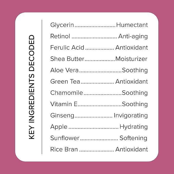 - Active Ingredients : Retinol, Vitamin E, Vitamin F