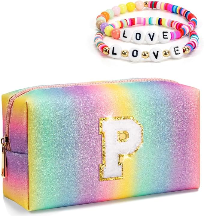 - Express Your Identity: Our makeup bag is designed with a gold glitter chenille letter, dive into personalization with all 26 letters at your fingertips, making your style one-of-a-kind.