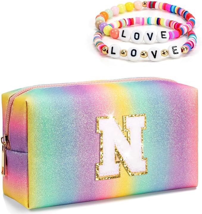 - Express Your Identity: Our makeup bag is designed with a gold glitter chenille letter, dive into personalization with all 26 letters at your fingertips, making your style one-of-a-kind.