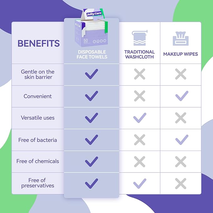- 【Convenient for Travel 】Jolly Care face towels are individually packaged and very portable, lightweight, efficient skin care at all times, convenient for travelling. If you have any questions or problems after receiving the product, please contact us at any time via Amazon email