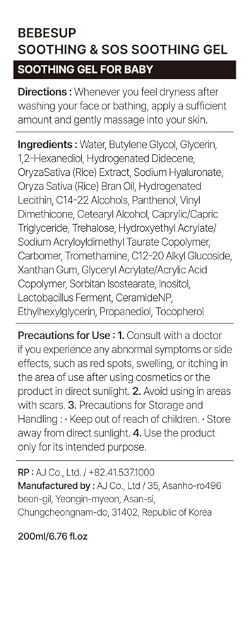 BEBESUP- Instant - Cooling Relief Baby Soothing Gel | Korean Skincare for Sensitive & Atopic Skin 3-Sec Cooling Effect Clinically Tested Hypoallergenic Dermatologist Approved 6.76 fl oz