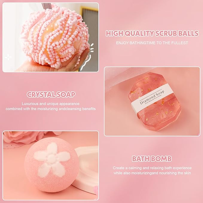 - 🎁【Relaxing Spa Gift Set for Women】Imagine the surprise moment when she receives the gift box, light the aroma candle and the light fragrance fills the whole bathroom, taking away the fatigue and stress of the day. Includes a diamond handmade soap and a bath ball to release a fresh, long-lasting scent for a dreamy bubble bath experience.